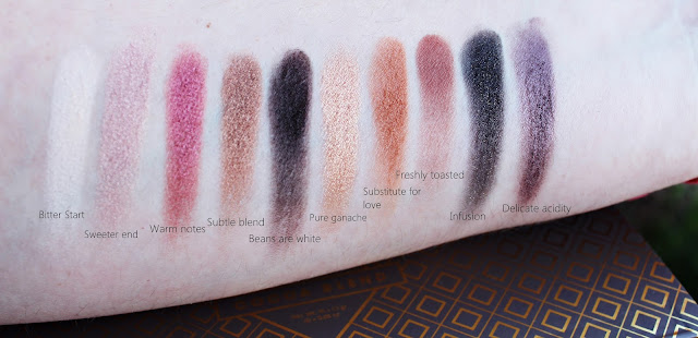 Gosto praticamente das sombras todas, mas as minhas preferidas são a Warm notes (ó meu deus esta sombra é linda linda linda), pure ganache (um douradão), freshly toasted (um castanho com fundo alaranjado perfeito para o côncavo, e a beans are white (um castanho bem escuro matte)!